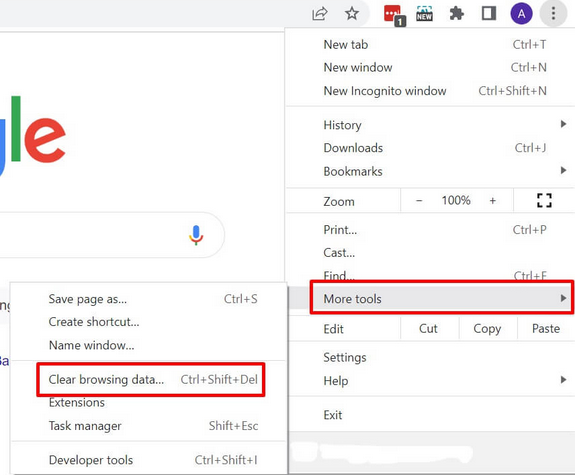 2. Klik menu More tools > Clear browsing data.