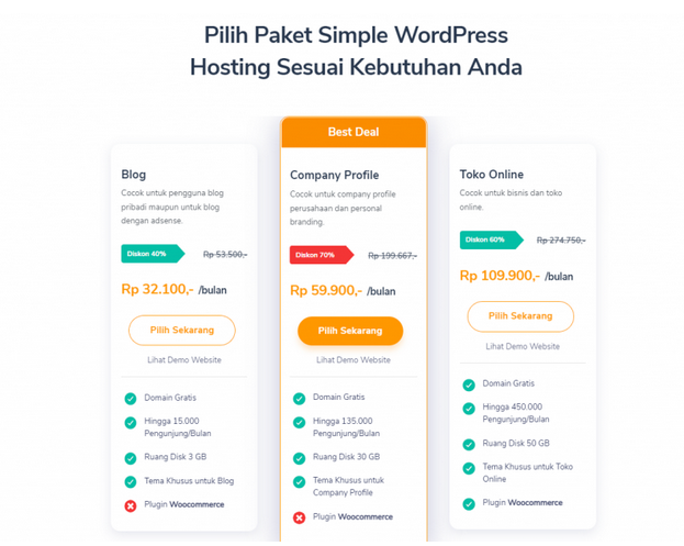 Nah, karena menggunakan hosting yang andal adalah cara mempercepat loading WordPress yang utama, pastikan Anda tidak salah pilih. Layanan Simple WordPress Niagahoster bisa menjadi pilihan Anda.