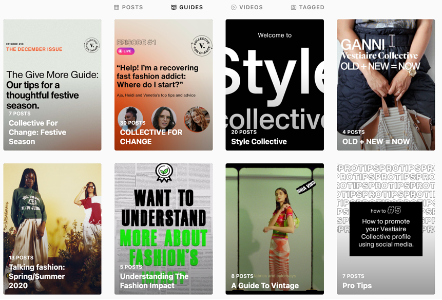 Misalnya, pasar mode Vestiaire Collective menyoroti nilai mereknya dengan memposting panduan tentang cara membuat lemari pakaian yang lebih berkelanjutan dan daya yang dapat didaur ulang.