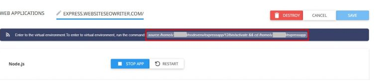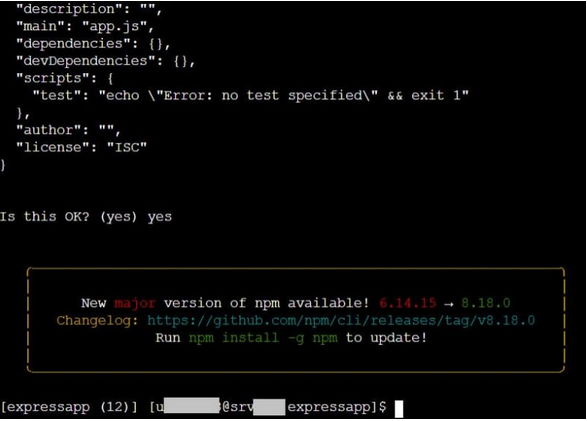 Anda sudah berada di langkah terakhir menginstal Express js di hosting. Di sini, Anda perlu memeriksa hasil akhir instalasi dengan: