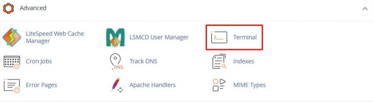 2. Buka tab baru dan akses dasbor cPanel. Kemudian pilih menunya Lanjutan > Terminal.
