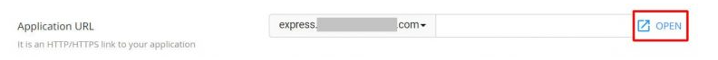 1. Kembali ke halaman Aplikasi Node.js. Kemudian, klik tombol MEMBUKA seperti ini: