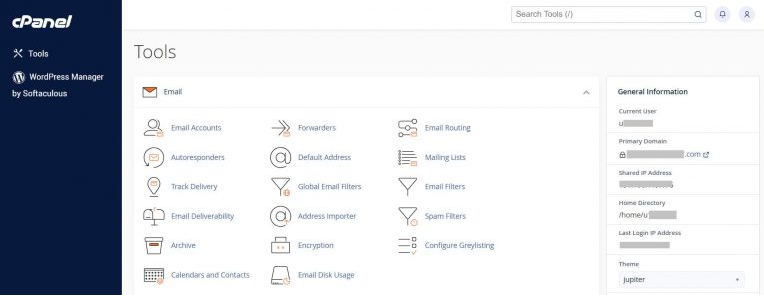 3. Setelah itu, Anda akan dibawa ke halaman dasbor cPanel seperti ini: