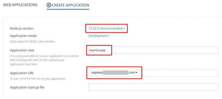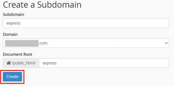 Langkah kedua menginstal Express js di hosting ini sebenarnya opsional. Anda dapat menggunakan domain utama, jika Anda tidak memiliki situs web atau proyek lain yang diinstal pada domain tersebut.