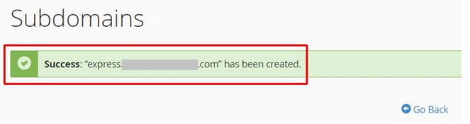3. Pembuatan subdomain baru berhasil. Silakan kembali ke dasbor cPanel.