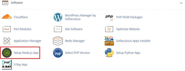 1. Buka menu Perangkat Lunak > Node.js seperti ini: