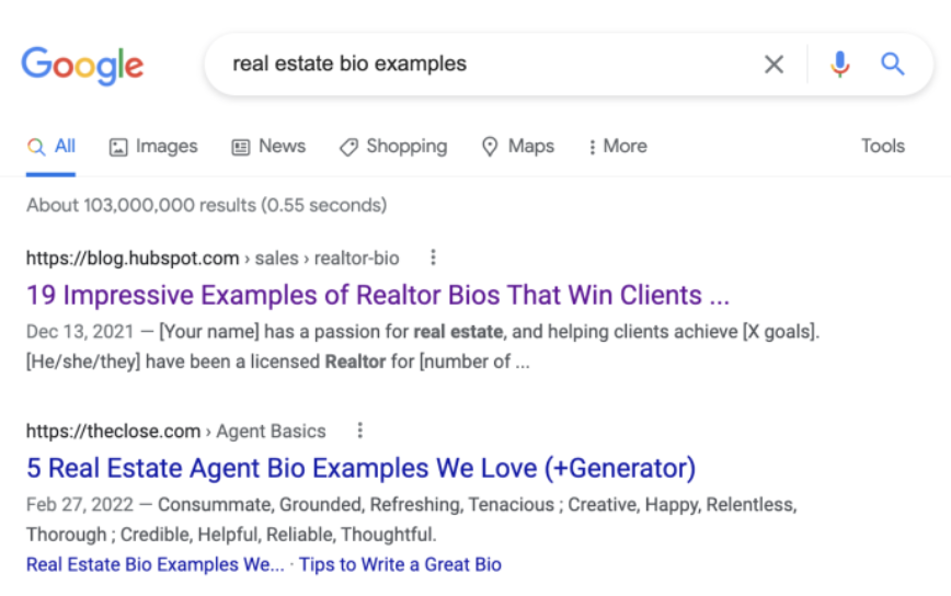 Deskripsi meta yang baik berpotensi muncul di halaman pertama hasil, dan yang bagus bahkan bisa menjadi yang pertama, seperti contoh di bawah ini:
