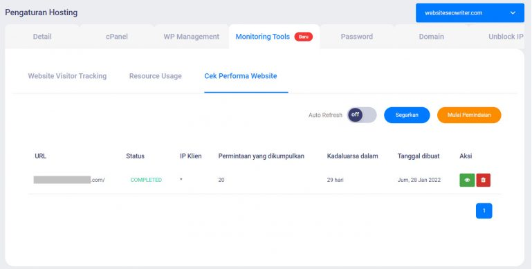 Alat Pemantau Kinerja tersedia di Area Anggota untuk Anda pelanggan Paket Hosting Bisnis dan Hosting Awan. Untuk menggunakannya, Anda dapat mengikuti panduan ini. Ayo cobain!