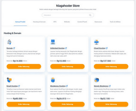 Mulai dari domain, berbagai paket web hosting, VPS, jasa pembuatan website, hingga website instan, semuanya ada disini Toko Niagahoster. Jadi, nggak perlu lagi buka banyak tab untuk berlangganan paket baru, deh!
